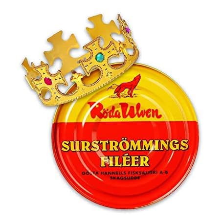 Sản phẩm Surströmming Party Set Röda Ulven 300 g Tin (Fermented Pegs) - 400 g/300 g Fish | Includes Exclusive Crown | (Challenge Herring Fillet) đang được bán với giá ưu đãi là $25.0809 tại nước Đức.