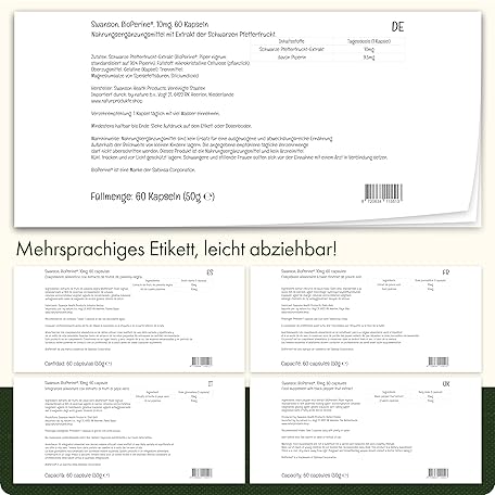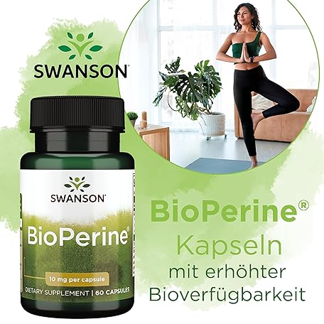 Sản phẩm Swanson, Bioperine, 60 Gluten-Free Capsules, 10 mg Black Pepper Fruit Extract Per Dose, Soy Free, GMO Free, Neutral in Taste đang được bán với giá ưu đãi là $17.4618 tại nước Đức.