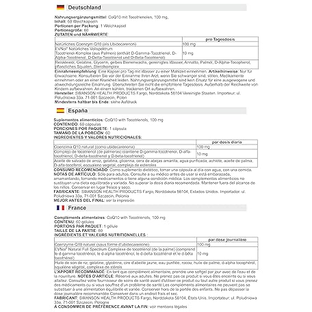 Sản phẩm Swanson Coenzyme Q10 100mg with Tocotrienols Heart and Vascular Support Antioxidant Properties 60 Softgels đang được bán với giá ưu đãi là $53.9768 tại nước Đức.