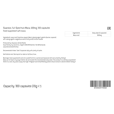 Sản phẩm Swanson, Full Spectrum Maca, 100 Gluten-Free Capsules, 1000 mg Maca Root per Dose, Soy Free, GMO Free, Neutral in Taste đang được bán với giá ưu đãi là $17.3092 tại nước Đức.
