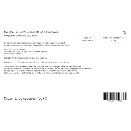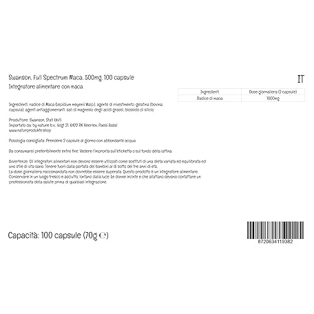 Thông tin sản phẩm Swanson, Full Spectrum Maca, 100 Gluten-Free Capsules, 1000 mg Maca Root per Dose, Soy Free, GMO Free, Neutral in Taste