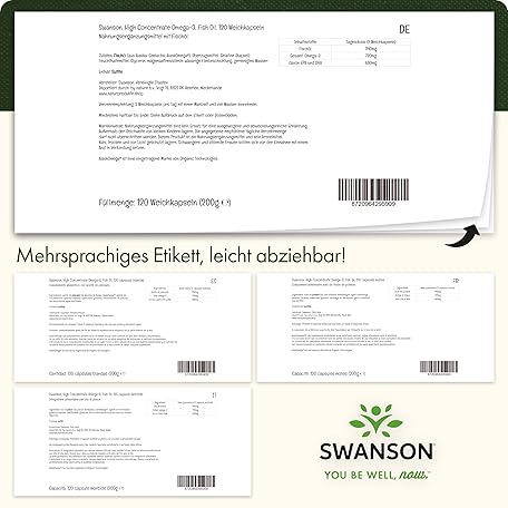 Sản phẩm Swanson, High Concentrate Omega-3, 120 Gluten-Free Softgels, 720 mg Omega-3 per Dose, Soy-Free, GMO Free, Neutral in Taste đang được bán với giá ưu đãi là $38.4661 tại nước Đức.