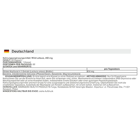 Sản phẩm Swanson - Wild Lettuce 450 mg | Support for Relaxation and Wellbeing - 60 Capsules đang được bán với giá ưu đãi là $22.9118 tại nước Đức.