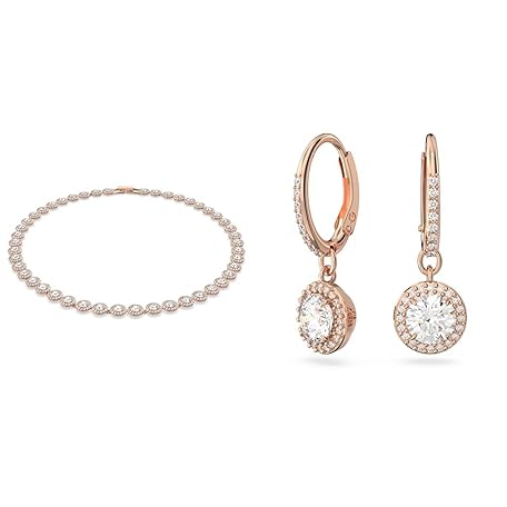 Swarovski Angelic Halskette, Rund, Weiss, Roségold-Legierungsschicht & Constella Drop-Ohrhänger, Rundschliff, Pavé, Weiß, Roségold-Legierungsschicht