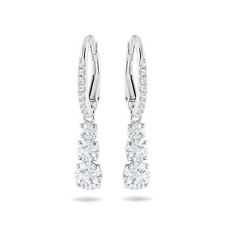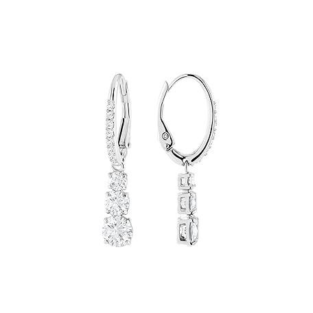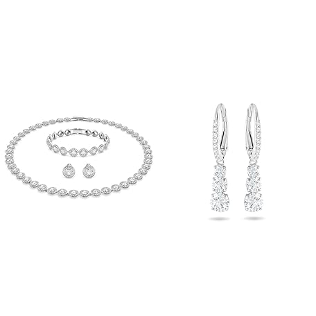 Swarovski Angelic Set, Round, White, Rhodium-Plated & Attract Trilogy Earrings, White, Rhodium-Plated, Rhodium-plated metal and Swarovski crystals