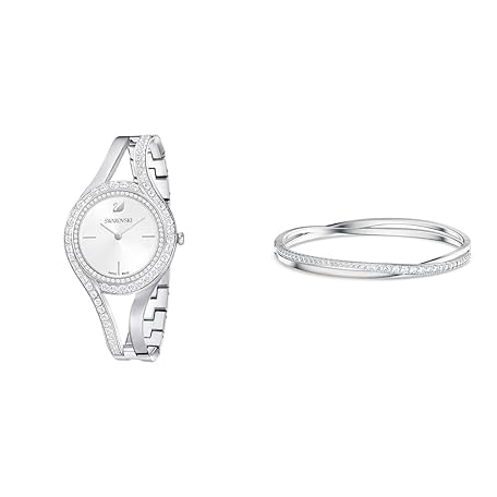 Swarovski Eternal Watch, Metal Strap, Silver-Coloured, Stainless Steel & Twist Bangle, White, Rhodium-Plated, Dress