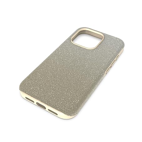 Swarovski High Smartphone Case for iPhone 15, Gold Tone Phone Case with Radiant Crystals, Metal