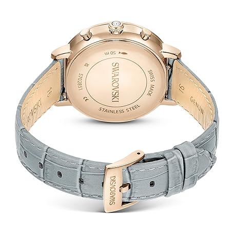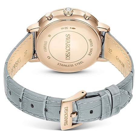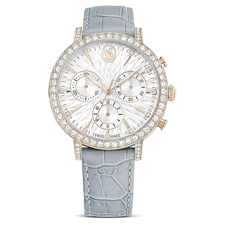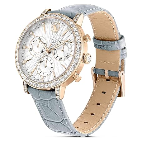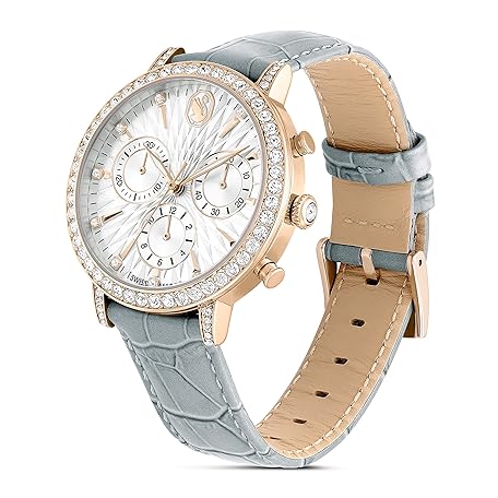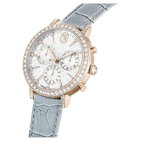 Thông tin sản phẩm Swarovski Matrix Tennis Chrono, Swiss Made Leather Strap, Grey, Champagne Gold Finish, Grey, Grey Strap, gray, Strap.