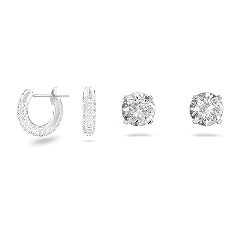 Swarovski Stone Creoles, Pavé, Small, White, Rhodium-Plated & Attract Stud Earrings, Round, Small, White, Rhodium-Plated, Crystal