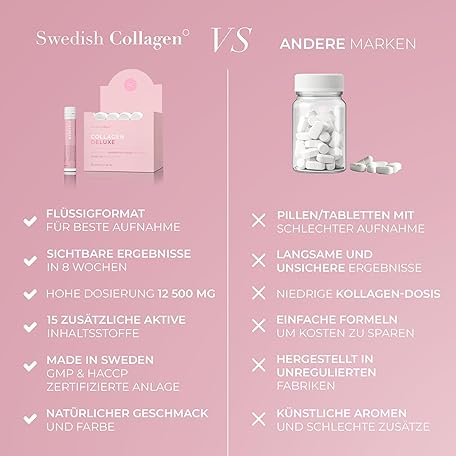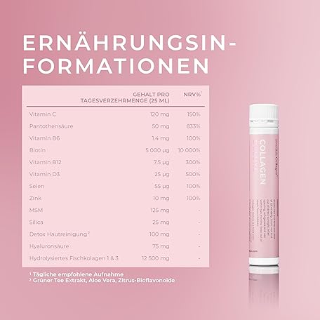 Sản phẩm Swedish Collagen - Collagen Deluxe Shots, 20 x 25 ml Liquid Collagen Supplement, 12,500 mg Sea Collagen with Hyaluronic Acid, Vitamins & Minerals for Hair, Skin and Nails (20) đang được bán với giá ưu đãi là $66.7734 tại nước Đức.