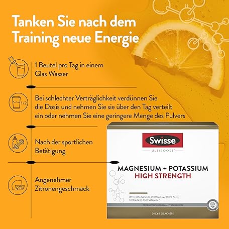 Sản phẩm SWISSE Magnesium and Potassium Strong - Dietary Supplement Powder Form Women and Men with Magnesium, Potassium - Vitamins, Minerals & Supplements Fatigue, 24 Lemon Bags, Made in Italy đang được bán với giá ưu đãi là $26.6396 tại nước Đức.