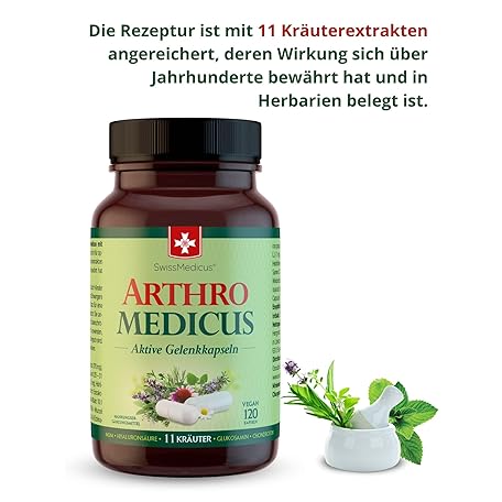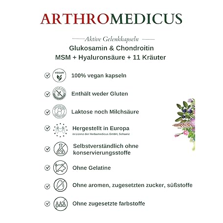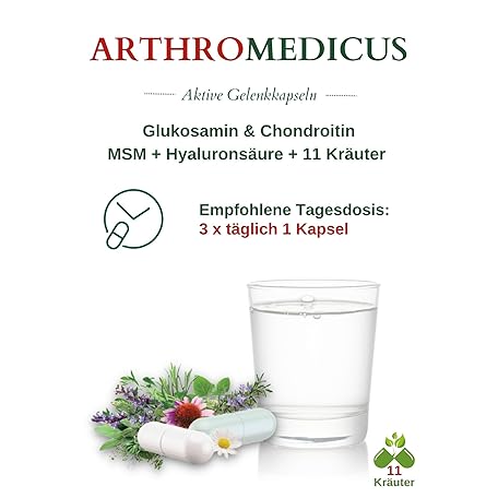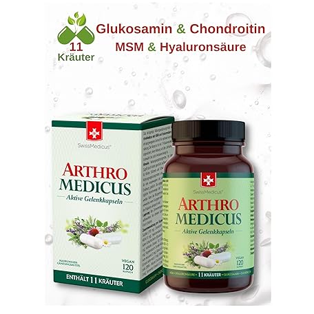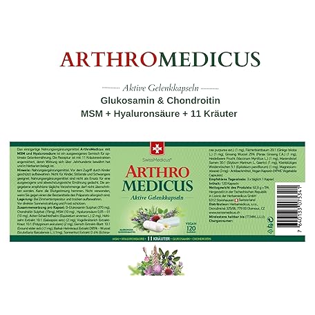 Sản phẩm SwissMedicus ArthroMedicus Glucosamine & Chondroitin High Dose - 120 Capsules with MSM & Hyaluronic Acid & with 11 Herbal Extracts, Produced in Europe đang được bán với giá ưu đãi là $29.6916 tại nước Đức.