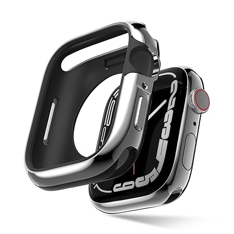 SwitchEasy Schutzhülle aus Flugzeugaluminium für Apple Watch Serie 9, Serie 8, Serie 7, 41 mm, Hartschale mit stoßdämpfender Innenstoßstange für maximalen Schutz, Odyssey Glossy Edition – Flash Silver