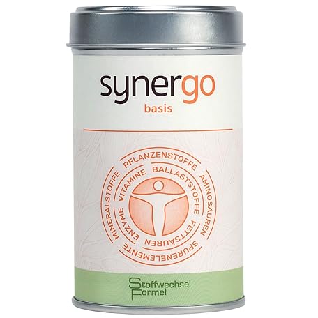 Synergo Base: Metabolism Formula Vegan. Superfoods such as spirulina, chlorella and much more provide nutrients such as amino acids, vitamins, B12 for intestinal cleansing, detox, acid-base balance.