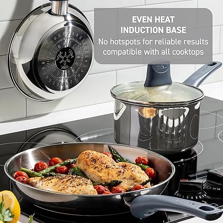 Thông tin sản phẩm T-fal Essentials Stainless Steel Frying Pan Set, 2 Pieces, 8" and 10.5", Induction Compatible, Oven Safe, 350F, Pots and Pans Set, Cooking Pans Cookware, Kitchen Frying Pans Dishwasher Safe