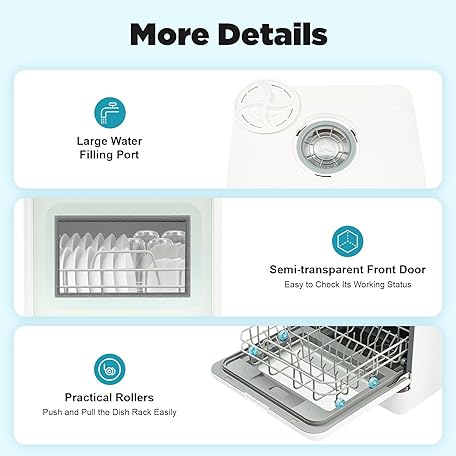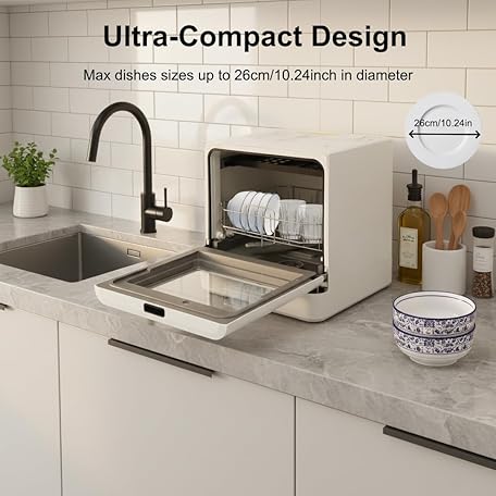 Thông tin sản phẩm Table Dishwasher, Mini Dishwasher with and without Water Connection, Portable Dishwasher with 5L Water Tank & 4 Programmes, for Homes, Camping, Motorhomes and Dormitories
