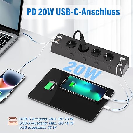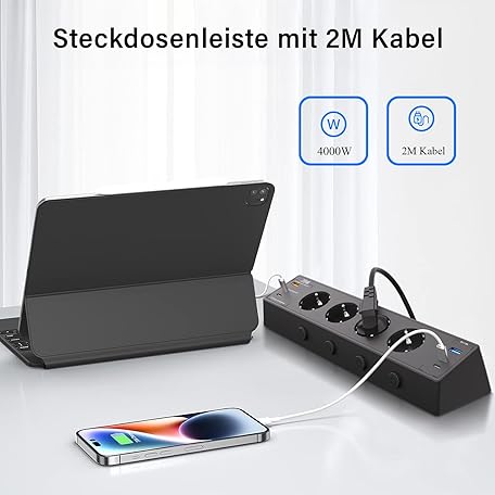 Sản phẩm Table Socket with USB C 20 W, Kinglink Power Strip Desk Individually Switchable, 4-Way Multiple Socket with Switch, Surge Protection with 2 m Cable for Home Office, Black đang được bán với giá ưu đãi là $43.382 tại nước Đức.