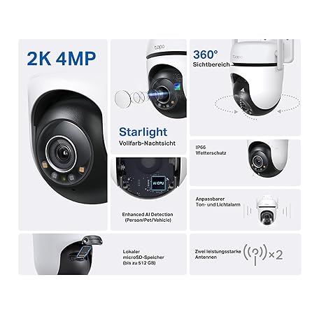 Sản phẩm Tapo TP-Link C520WS Outdoor Surveillance Camera, Starlight Colour Night Vision, 360° Outdoor Camera, 2K 4MP, 2 Powerful Antennas, IP66 Weatherproof, Safe Local & Cloud Storage, AI Detection, App đang được bán với giá ưu đãi là $56.8871 tại nước Đức.