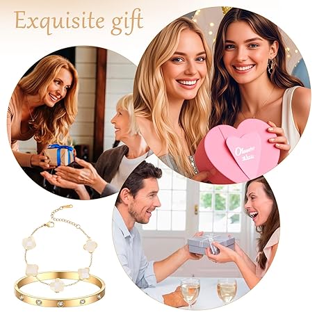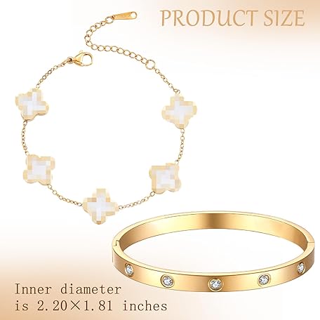 Thông tin sản phẩm Tashce Four Leaf Clover Bracelet Gold, Set of 2 18K Gold-Plated Bangle, Clover Bracelet for Women, Lucky Symbol Jewellery Gift for Wedding, Birthday, Valentine's Day, S, Stainless Steel, Cubic