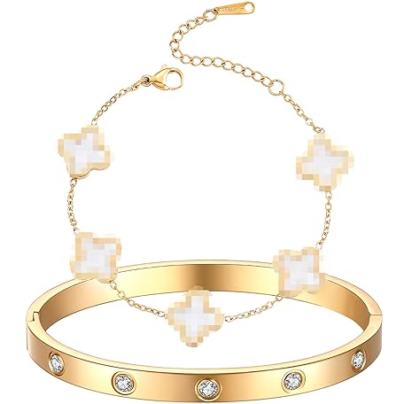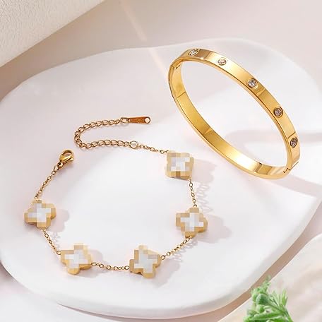 Sản phẩm Tashce Four Leaf Clover Bracelet Gold, Set of 2 18K Gold-Plated Bangle, Clover Bracelet for Women, Lucky Symbol Jewellery Gift for Wedding, Birthday, Valentine's Day, S, Stainless Steel, Cubic đang được bán với giá ưu đãi là $15.6088 tại nước Đức.