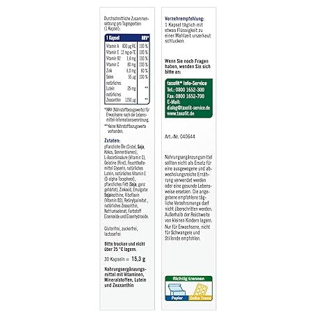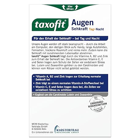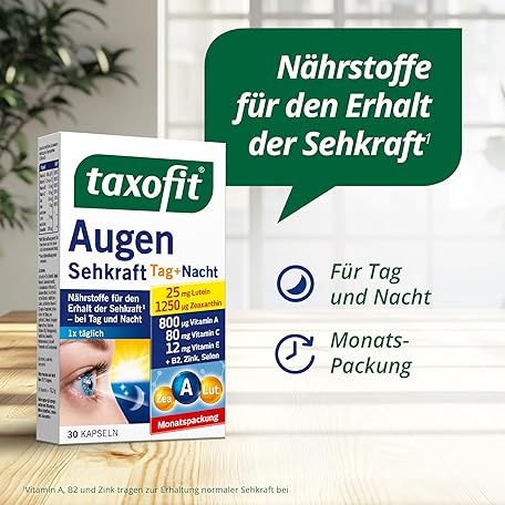 Sản phẩm taxofit Eye Vision Day + Night Capsules, Pack of 30 đang được bán với giá ưu đãi là 0 tại nước Đức.