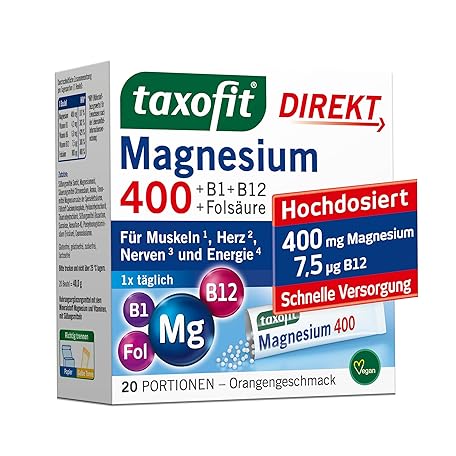 Taxofit Magnesium 400 + B1 + B6 + B12 + Folic Acid, 800 Gran. Pack of 20 Resin