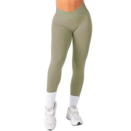 TAYOEA Sport Leggings Damen V Cross Stretch Push Up Yoga Leggings Scrunch Butt Fitness Leggings High Waist Seamless Workout Sportleggins Booty Lifting Elastisch Yoga Gym Hosen