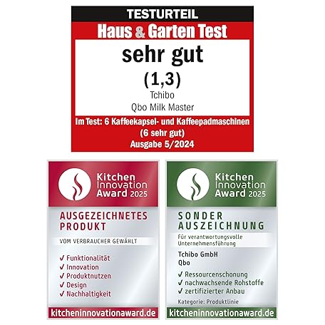 Thông tin sản phẩm Tchibo Qbo Milk Master Premium Capsule Machine Including 24 Recyclable Qbo Capsules for Cappuccino, Espresso, Caffè Crema, Milk Foam at the Touch of a Button with Removable Milk Tank 300 ml, Lipstick