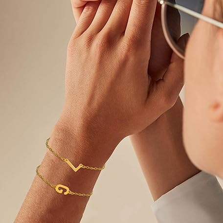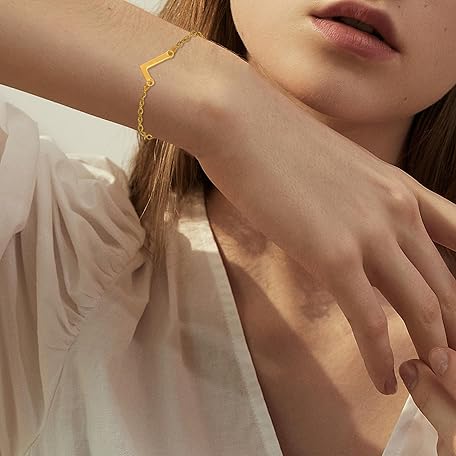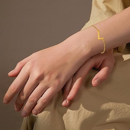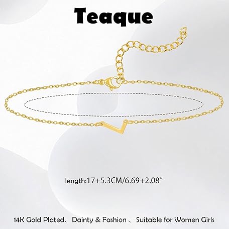 Thông tin sản phẩm Teaque Women's Gold Bracelet, 14k Gold Initials Bracelet with Letters, Dainty Gold Bracelet, Women's Bracelets, Personalised Bracelet, Women's Gifts, Fashion Jewellery for Women, Girls, Teenagers