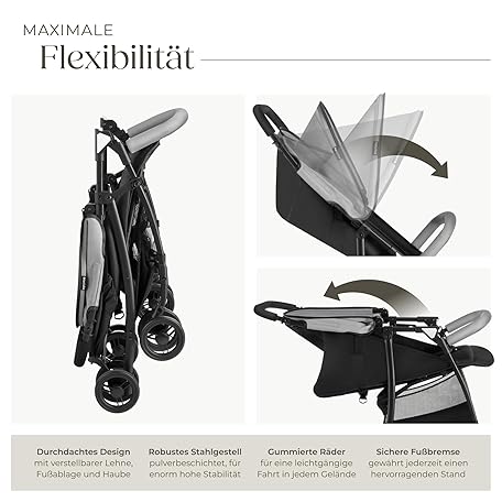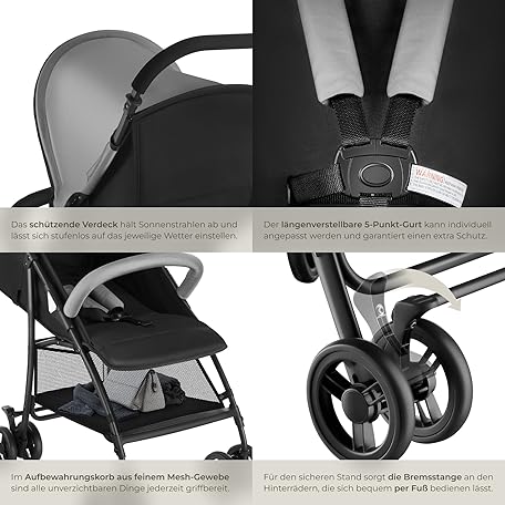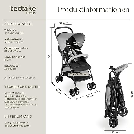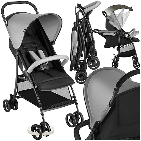 Thông tin sản phẩm tectake® Pushchair Buggy with Hood, Small Foldable, Travel Buggy, Baby Pram, Buggy with Reclining Function, Trolley with Basket