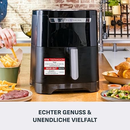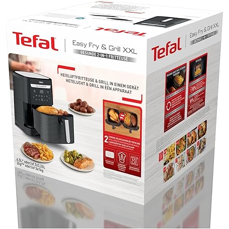 Thông tin sản phẩm Tefal Easy Fry & Grill XXL 2-in-1 Hot Air Fryer, 6.5 L, Air Fryer + Grill, Flexcook Insert for 2 Foods at the Same, Fryer without Oil, Energy Saving, 8 Programmes, XXL Hot Air Fryer, EY8018
