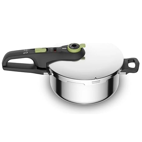 Thông tin sản phẩm Tefal Secure Trendy P2580400 Pressure Cooker 4 L Induction 2-Level Regulator: Intensive Level 117 °C, Gentle Level 112 °C, Induction Capsule Base, for All Hob Types, Stainless Steel, Black/Green