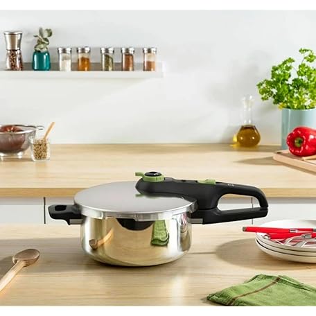 Thương hiệu Tefal là cái tên nổi tiếng được rất nhiều khách hàng trên thế giới chọn lựa. Với kiểu dáng đẹp mắt, sang trọng, sản phẩm Tefal Secure Trendy P2580400 Pressure Cooker 4 L Induction 2-Level Regulator: Intensive Level 117 °C, Gentle Level 112 °C, Induction Capsule Base, for All Hob Types, Stainless Steel, Black/Green là sự lựa chọn hoàn hảo nếu bạn đang tìm mua một món cho riêng mình.