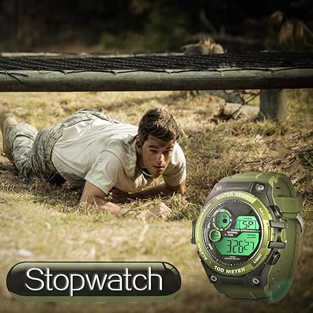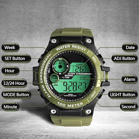 Thông tin sản phẩm TEKMAGIC Sports Diving Watch for Men Boys 10ATM Waterproof with Stopwatch Chronograph Alarm Dual Time Zone 12/24H Format, Green, Bracelet
