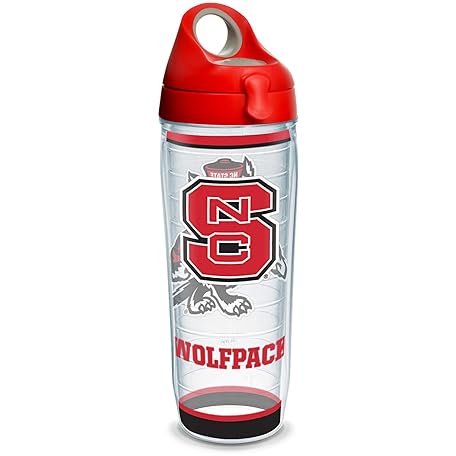 • Tervis 1343678 NC State Wolfpack Tradition Isolierbecher mit Wickelverschluss, Rot mit grauem Deckel, 24oz Wasserflasche, transparent