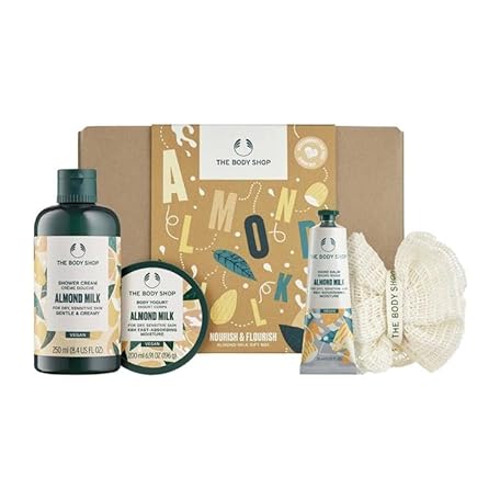 Thông tin sản phẩm The Body Shop Almond Milk & Honey Gift Set - Skin Care Set with Shower Cream, Body Yogurt, Hand Balm & Sponge - Vegan, for Sensitive Skin