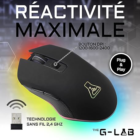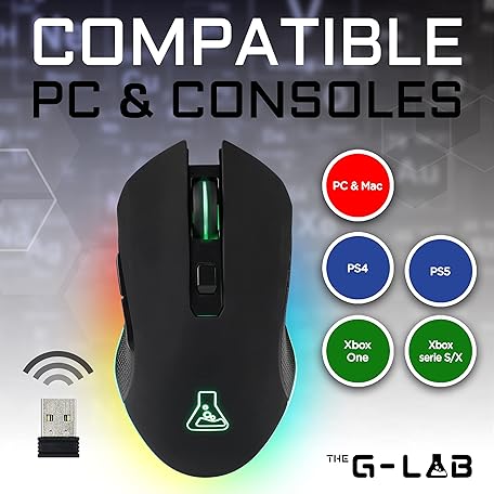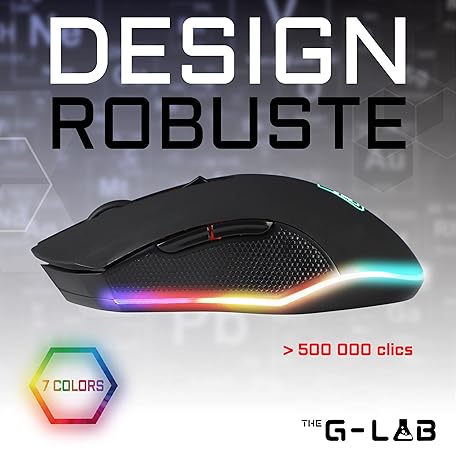 THE G-LAB Kult Helium USB Wired Gaming Mouse - Optical Sensor with 800 to 6400 DPI, 7-Colour LED Backlight, 6 Buttons - PC Mac Xbox One PS5 (Wireless)