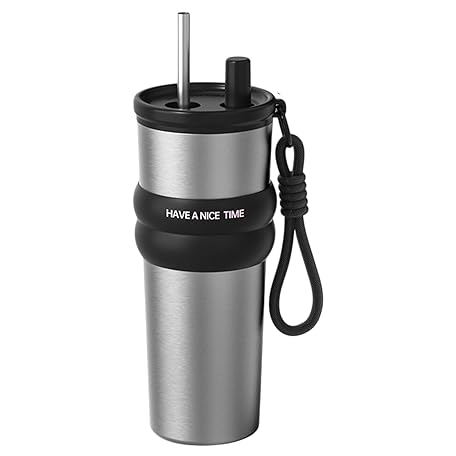 Thermo Kaffeebecher | 710ml Isolierbecher Mit Deckel Und Strohhalm,Heiß Und Kalt Isolierflasche Große Füllmenge Für Camping Sport Picknick Angeln Pendeln Reisen
