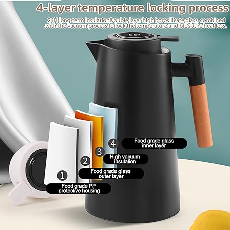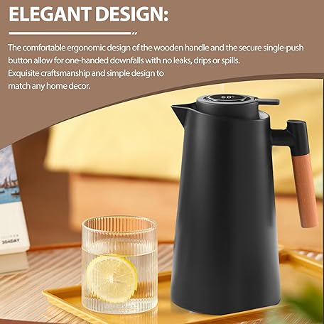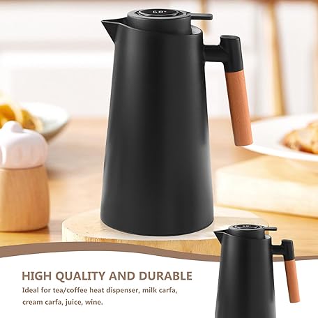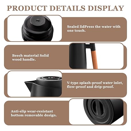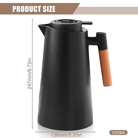 Thông tin sản phẩm Thermos Flask, Insulated Jug, Coffee Pot, Thermal Double-Walled Vacuum Insulation, Coffee Pot, Teapot with Wood Look Handle, Warming Jug for Tea, Water, Drinks, (Black, 1L)