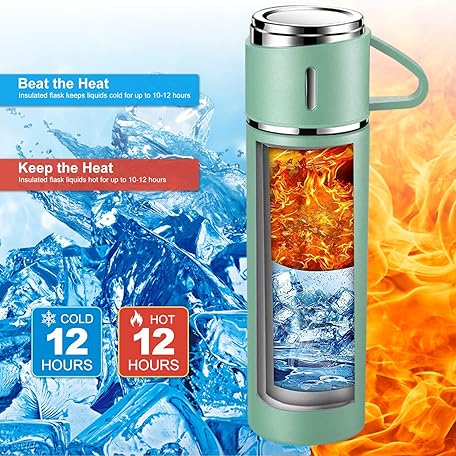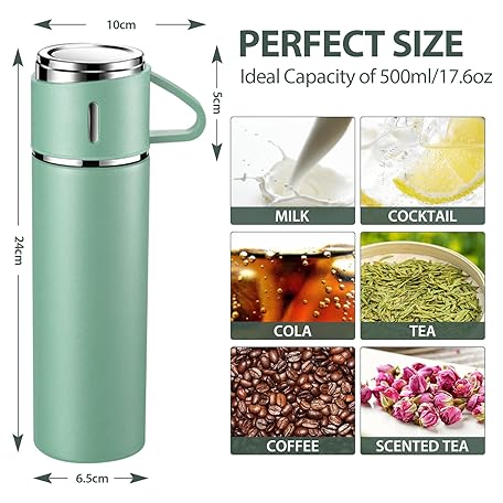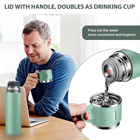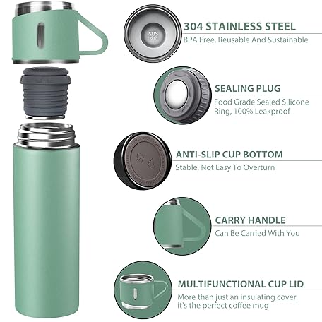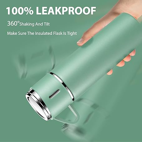 Thông tin sản phẩm Thermos Flask, Stainless Steel Drinking Bottle, Keeps Hot and Cold for 10 Hours, Insulated Flask 500 ml with Leak-Proof Lid and Handle, Thermos Flask for Travel, Work, School, Children, Baby, Green