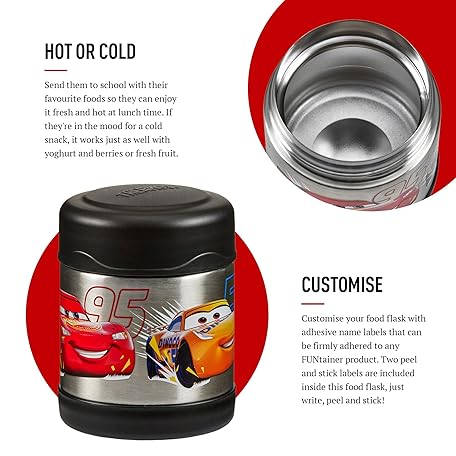 Sản phẩm Thermos kids FUNTAINER Thermobehälter für Essen 300ml, Disney Cars - Edelstahl, absolut dicht, hält Speisen 5h heiß & 7h kalt, mit klappbarem Löffel, BPA-frei, ideal für Schule und Kita đang được bán với giá ưu đãi là $20.274 tại nước Đức.