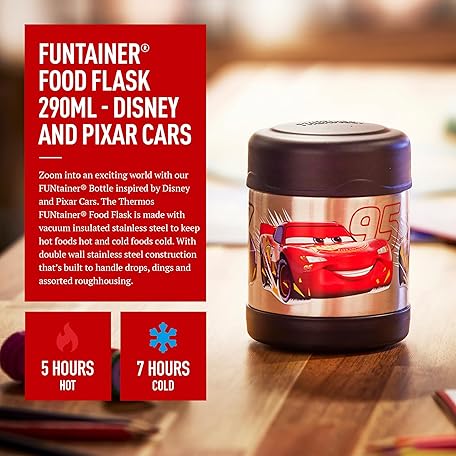 Thông tin sản phẩm Thermos kids FUNTAINER Thermobehälter für Essen 300ml, Disney Cars - Edelstahl, absolut dicht, hält Speisen 5h heiß & 7h kalt, mit klappbarem Löffel, BPA-frei, ideal für Schule und Kita
