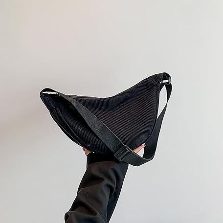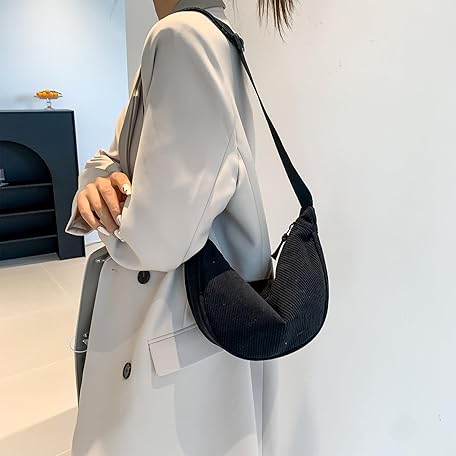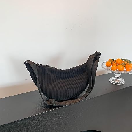 Thông tin sản phẩm TIAASTAP Small Corduroy Half Moon Bag, Plain Crossbody Bag, Bum Bag, Corduroy Bag, Shoulder Bag, Women's Fabric Halfmoon Bag, Women's Hobos & Shoulder Bags with Adjustable Shoulder Strap