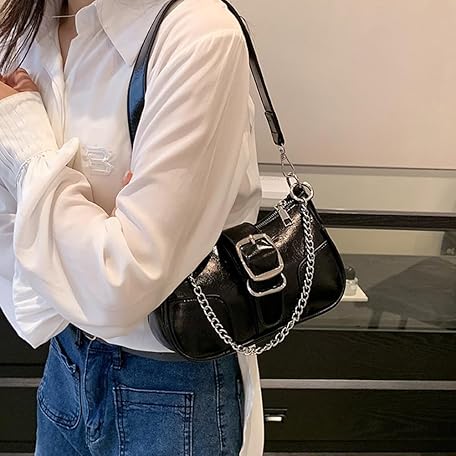 TIAASTAP Women's Small Shoulder Bag, Leather Hobo Bag, Shoulder Bag, Vintage Y2k Shoulder Bag with Zip for Women, Clutch Purse, Cool Things for Teenage Girls