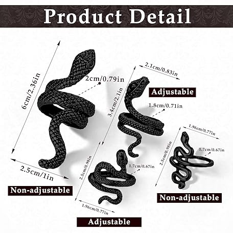 Sản phẩm TIESOME Snake Ring for Women, 4 Pieces Vintage Snake Open Rings, Animal Finger Joint Stackable Rings Ankle Rings Jewellery for Women and Girls (Black), Metal đang được bán với giá ưu đãi là $2.7686 tại nước Đức.