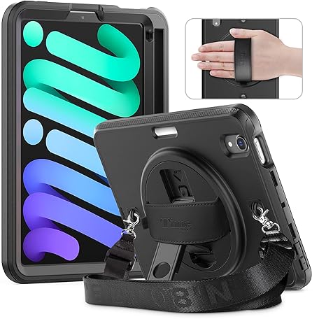 Thông tin sản phẩm Timecity Schutzhülle für iPad mini 7 (A17 Pro) 2024 / Mini 6 8,3 Zoll – robuste Schutzhülle mit Displayschutzfolie, drehbarem Ständer, Schultergurt und Stifthalter, Hülle für iPad mini 7. / 6