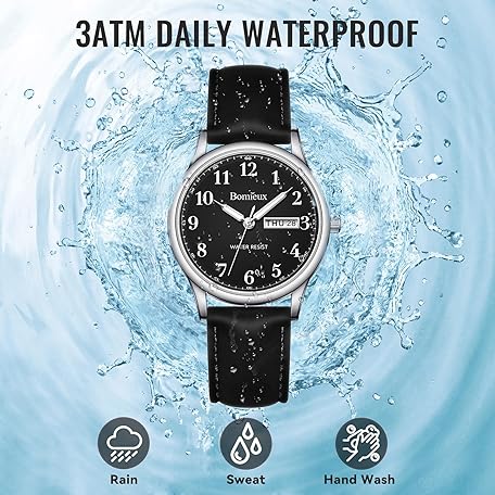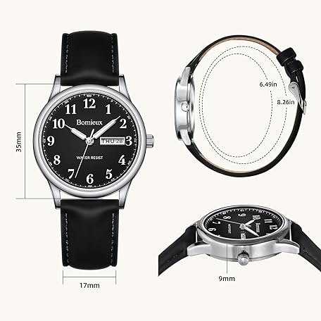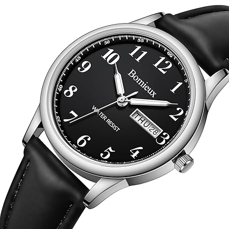 Thông tin sản phẩm Timever Men's Quartz Watch Analogue with Leather Strap, 3 Hands, Date, 3 ATM Waterproof, Large Numerals, Gift for Men