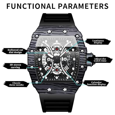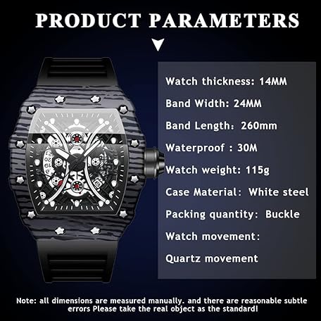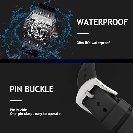 Sản phẩm Tiong Men's Fashion Quartz Watch Skeleton Tonneau Large Dial Analogue Men's Watch Casual Business Silicone Strap Watches đang được bán với giá ưu đãi là $34.4985 tại nước Đức.