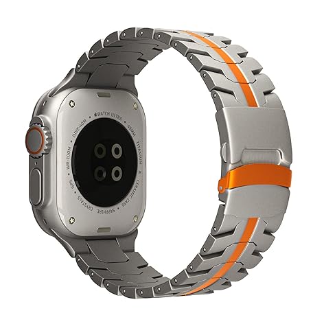 Titan-Armband, kompatibel mit Apple Watch Ultra 2/1, 49 mm, 46 mm, 45 mm, 44 mm, 42 mm, iWatch Ultra Serie 10/9/8/7/SE/6/5/4/3, solides Herren-Ersatzarmband aus robustem Metall (Titan und Orange)