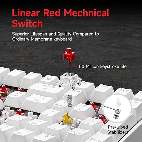 Thông tin sản phẩm TMKB T98SE Mechanical Gaming Keyboard, LED, Number Keys, Type-C Data Cable, Anti-Ghosting, 98 Keys Keyboard with Red Linear Switch, US Layout for PC, Windows Gamer Typist, White